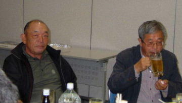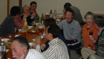 | ↑幹事の関川君と資料作り担当の土屋君です・・ | ↑皆さんが和やかに飲んで語らっています・・ | ↑酒癖の悪い人はいませんでしたね・・ |
